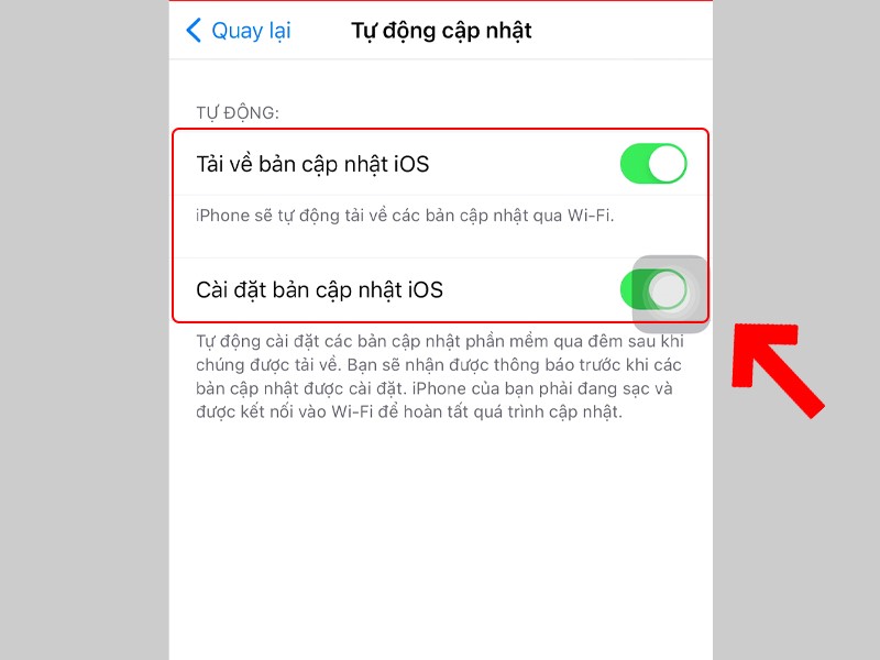 Cách 1: Thiết lập chế độ Tự động cập nhật iPhone