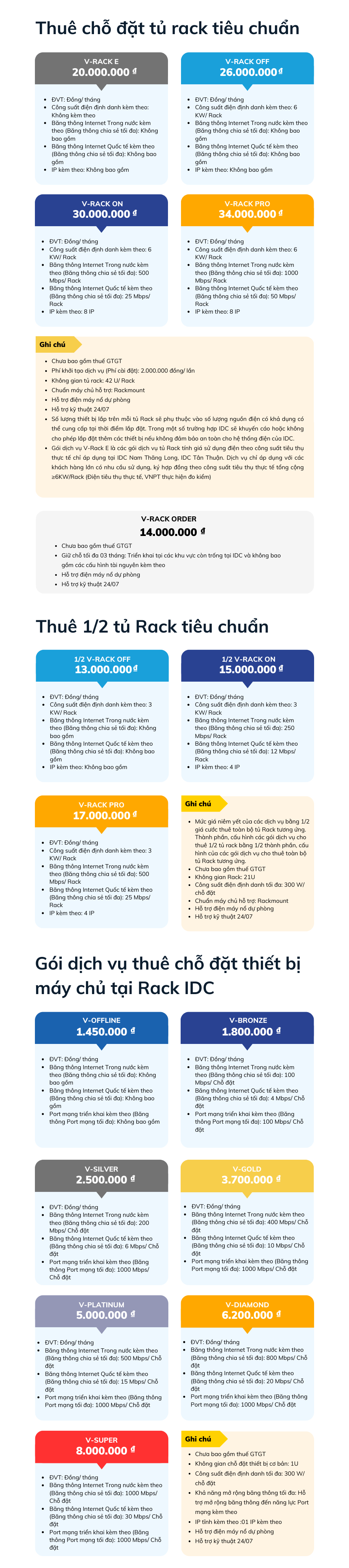 - Dịch vụ cơ bản: Cung cấp không gian rack, nguồn điện, môi trường phòng máy cho khách hàng.