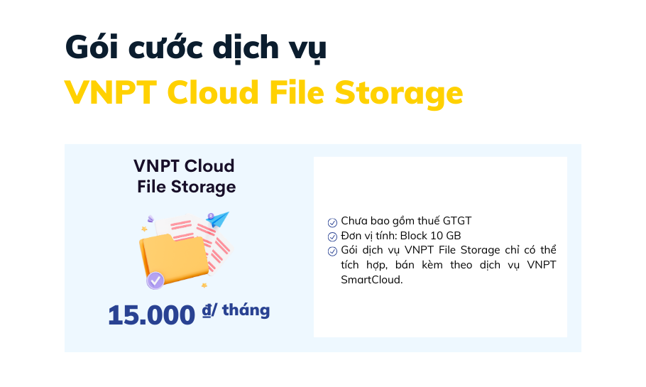 Dịch vụ VNPT Cloud File Storage cung cấp đối tượng Filesystem để cho các máy chủ ảo có thể kết nối tới. Bằng việc quản lý Filesystem, người dùng có thể cấu hình dễ dàng dung lượng, kích thước hay snapshot của phân vùng lưu trữ đã tạo.