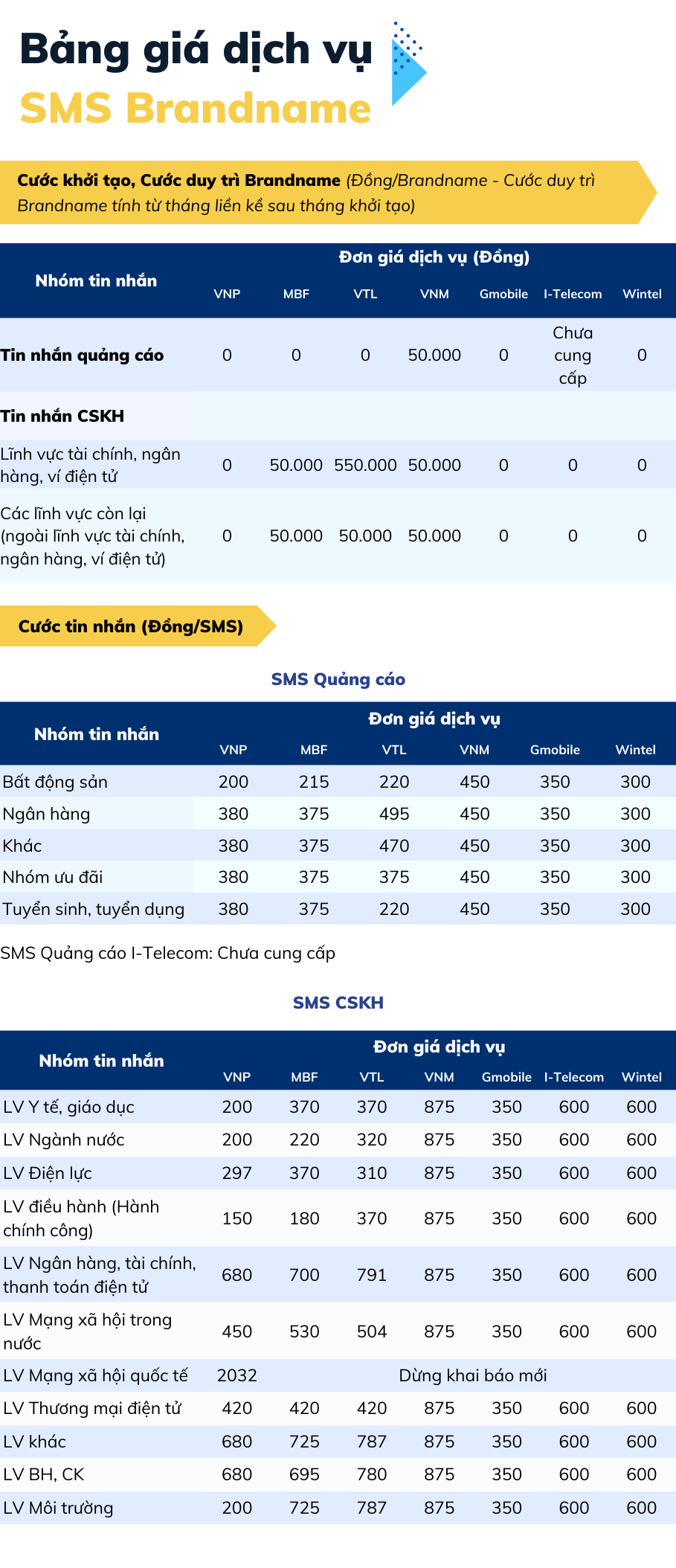 Dịch vụ SMS Brandname là dịch vụ tin nhắn thương hiệu bao gồm dịch vụ SMS Quảng cáo (SMS QC) và dịch vụ SMS Chăm sóc khách hàng (SMS CSKH)