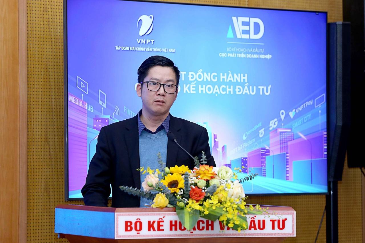 Ông Đặng Duy Khánh, Giám đốc Ban Dự án Chuyển đổi số oneSME, Tập đoàn Bưu chính viễn thông VNPT chia sẻ về các hoạt động cùng Chương trình tại Hội thảo