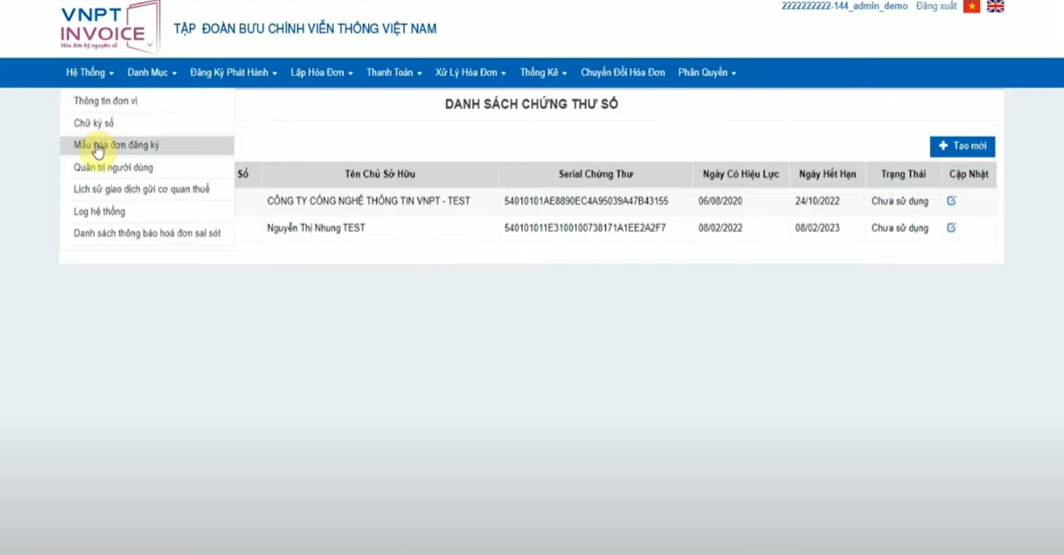 Bước 2: Cấu hình dữ liệu hệ thống trước khi đăng ký sử dụng hoá đơn điện tử