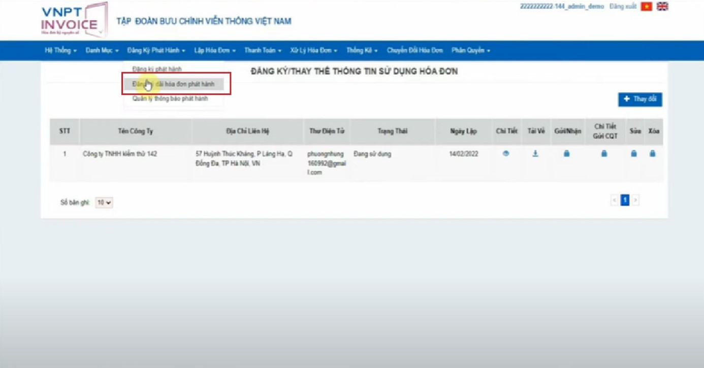 Bước 3: Đăng ký/thay đổi thông tin sử dụng hóa đơn điện tử