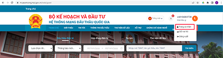 Bước 1: Đăng nhập tài khoản vào trang chủ mạng đấu thầu (https://muasamcong.mpi.gov.vn) => Chọn Trang cá nhân
