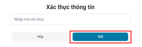 Bước 5: Sau khi Lưu chứng thư số công cộng thành công người sử dụng cần thực hiện bước xác thực thông tin bằng 2 cách: Xác thực qua Email đăng ký tài khoản sử dụng hoặc xác nhận thông qua ứng dụng dụng Google Authenticator. Người sử dụng lấy mã xác thực theo cách lựa chọn rồi điền vào ô Nhập mã xác thực => Chọn Gửi để hoàn thành việc xác thực