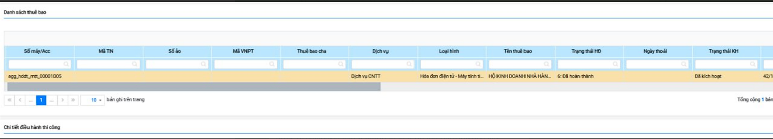Giao diện hiển thị mã thuê bao của gói dịch vụ khách hàng đăng ký sử dụng thành công trên hệ thống bán hàng của VNPT