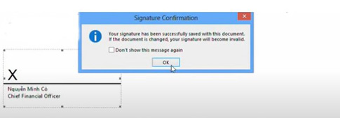 - Bước 8: Màn hình sẽ hiển thị cửa sổ Signature Confirmation → nhấn OK