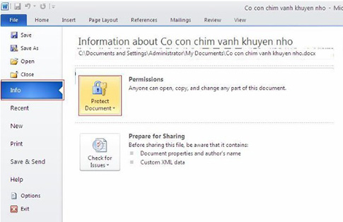 - Bước 2: Chọn mục File trên thanh công cụ → chọn mục Info