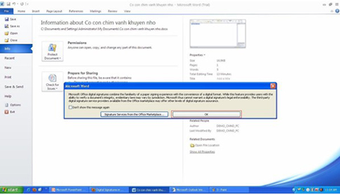 2. Cách chèn chữ ký số trong word 2010