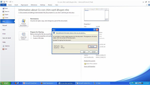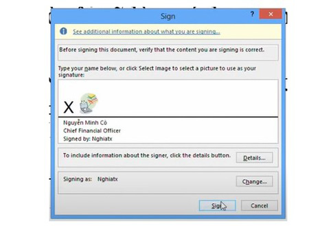 - Bước 5: Màn hình máy tính sẽ hiển thị cửa sổ Sign → Chọn nút Change