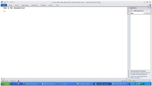 Trên màn hình sẽ hiển kết quả mẫu chữ ký số trong Word 2010 như sau: