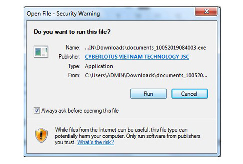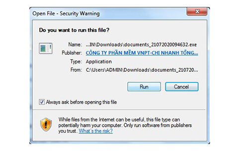 Người dùng tải ứng dụng Plug in VNPT CA tại website: https://vnpt-ca.vn/download-page về máy tính và bấm “Run” để tải.