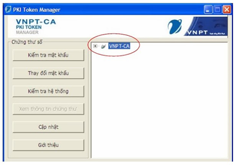 Bước 4: Sau đó, đăng nhập vào “PKI Token Manager”, nhấn “VNPT CA” để xem thông tin chứng thư số.