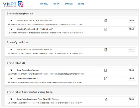 Người dùng truy cập vào website https://vnpt-ca.vn/download-page lựa chọn Dirver tương ứng với USB Token.