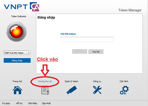 - Bước 1: Cắm USB Token vào máy tính → chọn mục Chứng thư số → Nhập mã PIN token