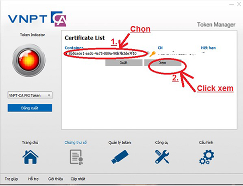- Bước 1: Truy cập vào VNPT-CA TOKEN MANAGER