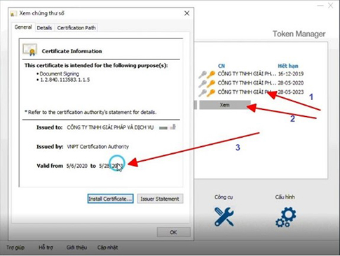 Bạn cũng có thể tự kiểm tra thời hạn của chữ ký số trước khi hệ thống báo bằng cách sau: