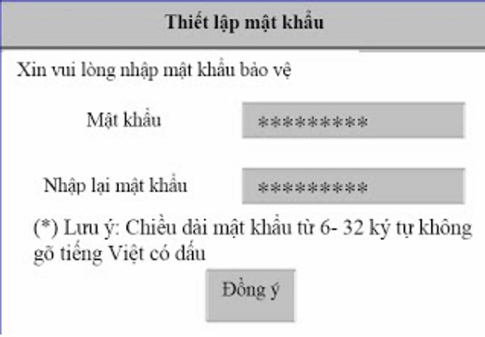 - Người dùng thiết lập mật khẩu cho ứng dụng.