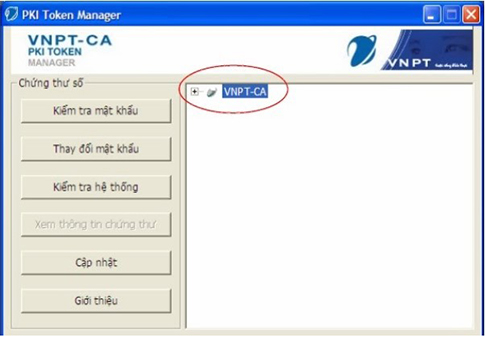 - Đăng nhập vào “PKI Token Manager” → nhấn “VNPT CA” để xem thông tin chứng thư số.