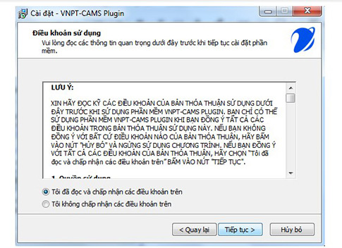 - Khi màn hình hiển thị → bấm “Tiếp tục” → “Tôi đã đọc và chấp nhận các điều khoản trên” → “Tiếp tục” để thực hiện cài đặt.