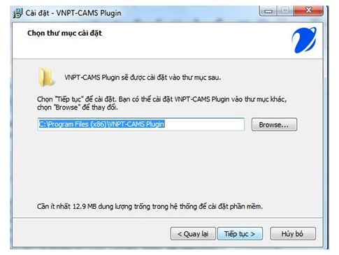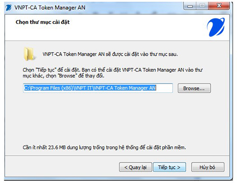 - Chọn thư mục lưu trữ phần mềm (thường hệ thống sẽ tự động lưu vào ổ C) và bấm “Tiếp tục”.