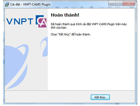 - Sau khi cài đặt xong, màn hình hiển thị hoàn thành, người dùng bấm “Kết thúc” để hoàn tất cài đặt Plugin CAMS.