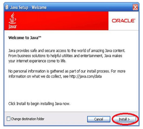 Bước 2: Nhấn vào biểu tượng “Java Setup” và cửa sổ hiện lên ứng dụng thì chọn “Install” để cài đặt.