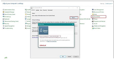 Bước 1: Người dùng kiểm tra phiên bản Java trong máy tính bằng cách vào “Control Panel” → “General” → “About”.