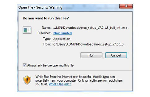 - Vào phần download trong máy, mở ứng dụng vừa tải về và bấm “Run” để cài đặt trình giả lập.