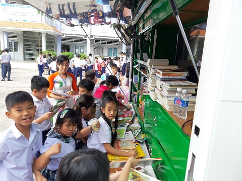 Xe thư viện lưu động được trang bị 01 máy chủ, 06 máy tính xách tay và gần 4.500 bản sách phục vụ các em học sinh. Trong chương trình ngoài việc đọc sách, các em còn tham gia các trò chơi khoa học vui như: đọc sách kể chuyện sách, truy cập internet tìm kiếm thông tin, hướng dẫn khoa học vui: Làm tên lửa khí, tham gia trò chơi tập thể... thu hút gần 200 em tham gia.