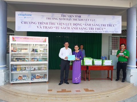 Bên cạnh đó, nhằm đáp ứng nhu cầu đọc sách, nghiên cứu, giải trí lâu dài cho thầy cô và các em tại trường, chương trình đã tặng tủ sách “Ánh sáng tri thức” gồm 415 bản sách, trị giá 13 triệu đồng do Trung tâm kinh doanh VNPT Đồng Tháp tài trợ.