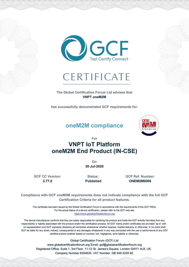 Sau khi đã trải qua số lần thử nghiệm nêu trên, VNPT và Authorized Test Lab tiếp tục hoàn thiện hồ sơ, đệ trình lên GCF (Diễn đàn chứng chỉ toàn cầu) để GCF rà soát, xem xét và cấp chứng chỉ cho VNPT IoT Platform.