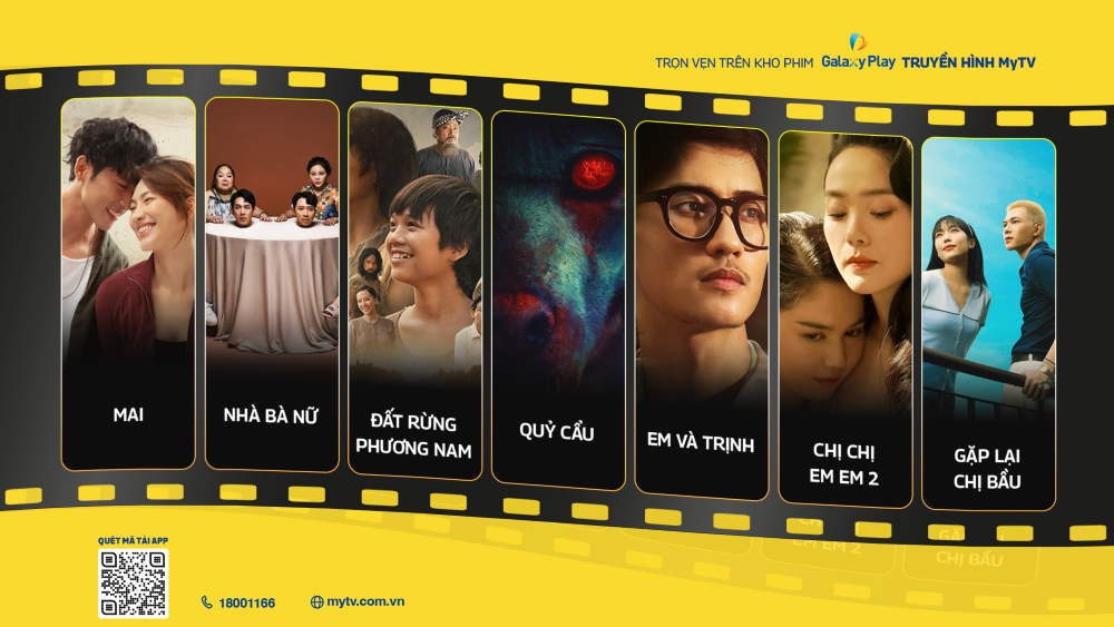 Chưa dừng lại ở đó, MyTV còn sở hữu một số bộ phim chiếu rạp nổi bật khác bao gồm: "Mai" - bộ phim siêu phẩm có doanh thu cao nhất Việt Nam mọi thời đại với 520 tỷ đồng, và "Quỷ Cẩu" - tác phẩm kinh dị trong nước ăn khách nhất với doanh thu hơn 108 tỷ. "Gặp Lại Chị Bầu" - phim Việt xuyên không đánh dấu lần đầu Anh Tú và Diệu Nhi hợp tác, và "Nhà Bà Nữ" - top 2 phim Việt có doanh thu cao nhất với 460 tỷ đồng, đoạt giải Cánh Diều Bạc 2023 và biên kịch xuất sắc nhất. "Đất rừng phương nam" cũng là một cái tên đáng chú ý khi nằm trong top 3 phim Việt doanh thu cao nhất năm 2023 với 140 tỷ đồng.