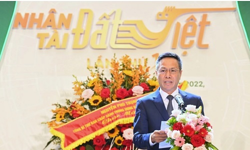 Ông Tô Dũng Thái - Chủ tịch Hội đồng Thành viên Tập đoàn Bưu chính Viễn Thông Việt Nam (VNPT) phát biểu tại Lễ trao giải Nhân tài Đất Việt lần thứ 16