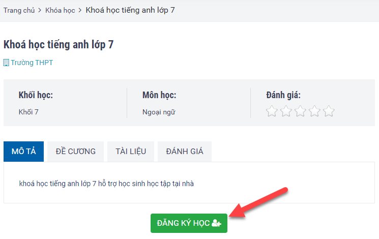 Click chọn vào Khóa học => Đăng kí học => Vào học rồi click vào học liệu phần bên trái.
