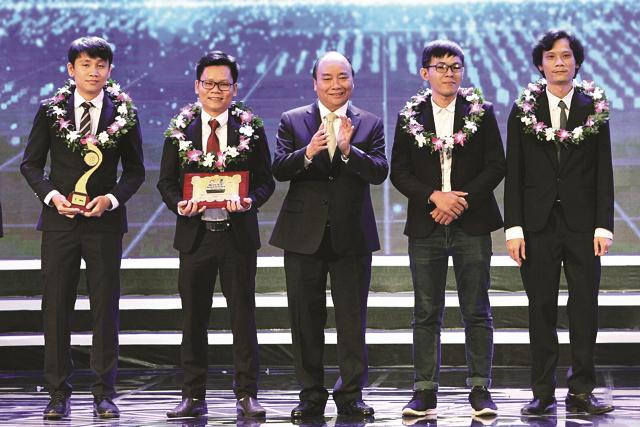 Giải thưởng Nhân tài Đất Việt đã trở thành bệ phóng cho nhiều tài năng Việt. Trong ảnh: Thủ tướng Chính phủ Nguyễn Xuân Phúc trao giải Nhất lĩnh vực cho nhóm tác giả lĩnh vực CNTT - Giải thưởng NTĐV năm 2017.