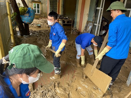 Đoàn thanh niên VNPT hỗ trợ người dân dọn dẹp nhà cửa, đường sá sau khi lũ rút.