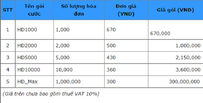 3. Bảng giá dịch vụ Hóa đơn điện tử VNPT