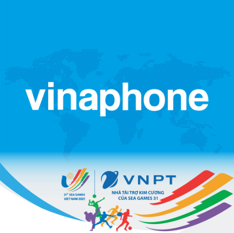 Logo VinaPhone trên ấn phẩm truyền thông cho sự kiện SEA GAMES 31 tổ chức tại Việt Nam năm 2021