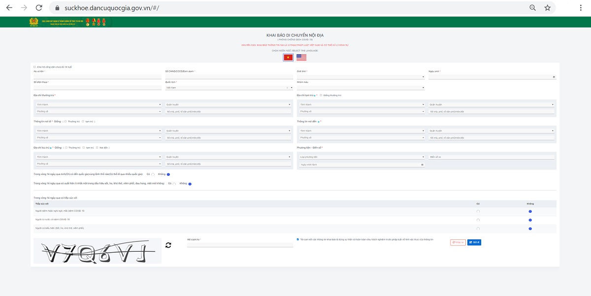 Hiện, Cục Cảnh sát Quản lý hành chính về trật tự xã hội (C06, Bộ Công an) đã đưa vào thí điểm việc sử dụng ứng dụng khai báo y tế, quản lý di biến động công dân vùng dịch và quản lý tiêm vaccine phòng COVID-19 trên nền tảng Cơ sở dữ liệu quốc gia về dân cư tại địa chỉ http://suckhoe.dancuquocgia.gov.vn.