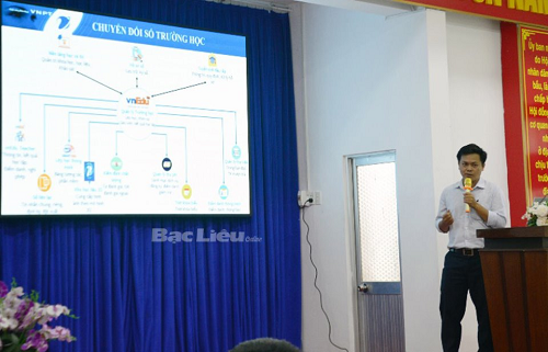 Đại diện VNPT Bạc Liêu giới thiệu các tính năng của Trung tâm Điều hành giáo dục