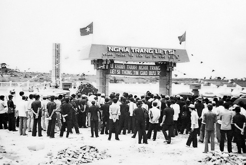 Lễ khánh thành Nghĩa trang liệt sĩ Giao bưu - Thông tin "R" năm 1985. Ảnh tư liệu do VNPT TP.HCM cung cấp.