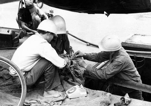 Lãnh đạo Bưu điện TP.HCM viếng các liệt sĩ tại Nghĩa trang ngành Giao bưu - Thông tin "R" sau khi khánh thành năm 1985. Ảnh do VNPT TP.HCM cung cấp.