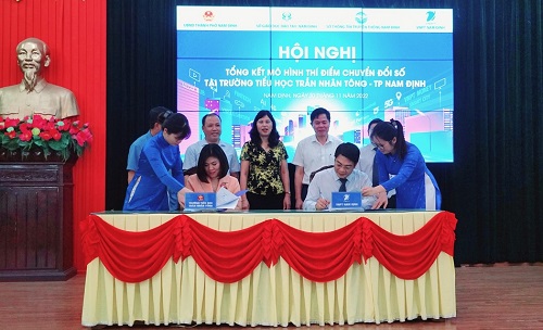 Ngày 30/11/2022, UBND thành phố Nam Định tổ chức Hội nghị tổng kết mô hình thí điểm chuyển đổi số tại trường tiểu học Trần Nhân Tông – Thành phố Nam Định. Tham dự hội nghị có Lãnh đạo UBND thành phố, Sở Thông tin Truyền thông, Sở giáo dục đào tạo, trường học các cấp trên địa bàn thành phố và VNPT địa bàn Nam Định.