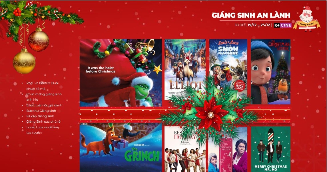 Không chỉ “ngợp thể thao”, bữa tiệc mùa lễ hội cuối năm trên chùm kênh K+ còn phủ sóng loạt phim ảnh đa màu sắc, phong phú chủ đề theo từng sở thích trên hai kênh K+CINE và K+LIFE, giúp khán giả được tiếp năng lượng tích cực và tưng bừng khí thế đón chào Giáng sinh, năm mới.