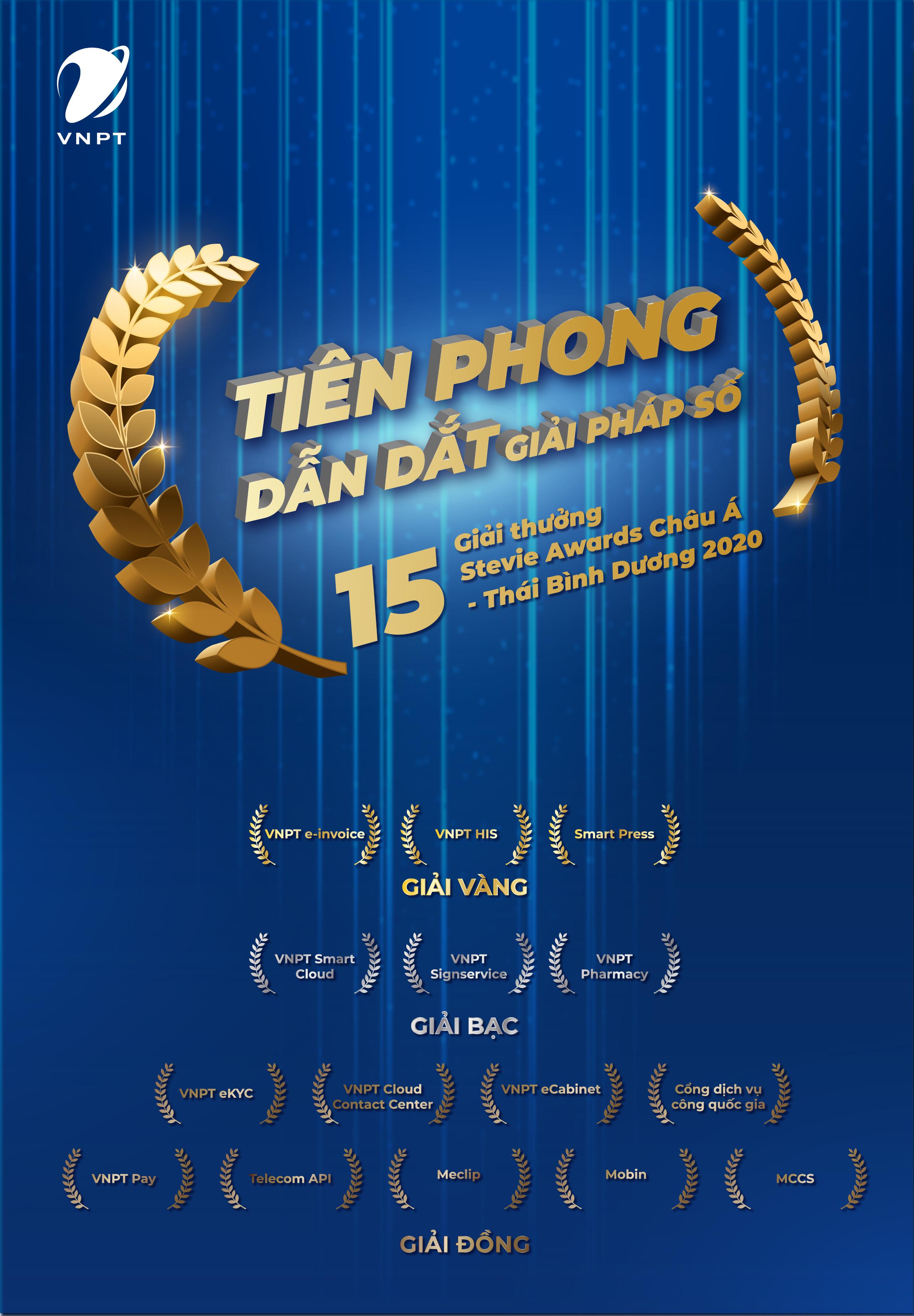 15 sản phẩm, dịch vụ của VNPT chiến thắng giải Vàng, Bạc và Đồng tại Giải thưởng Stevie Awards 2020 phần lớn là những sản phẩm giải pháp số, trong đó phải kể đến VNPT e- Invoice (giải Vàng), VNPT Smart Cloud (giải Bạc), VNPT Signservice (giải Bạc), VNPT Cloud Contact center (giải Đồng), VNPT Pay (giải Đồng), VNPT eKYC (giải Đồng)…