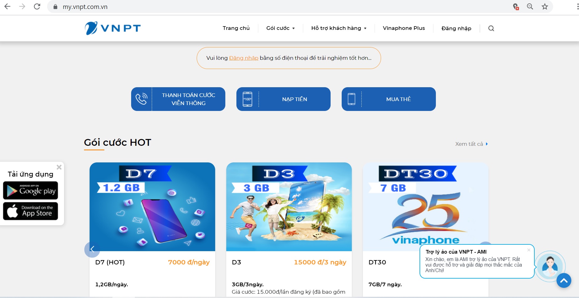 Hiện tại, khách hàng có thể giao tiếp với AMI trên website vnpt.com.vn, shop.vnpt.vn và My VNPT.