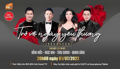 Lấy cảm hứng từ Hà Nội và tình yêu, nơi đầy ắp những yêu thương và biết bao kỷ niệm, Live concert "Trở Về Ngày Yêu Thương", dưới sự kết hợp độc đáo của bộ tứ danh ca Việt là Bằng Kiều, Ngọc Anh, Tùng Dương, và Quang Dũng hứa hẹn sẽ mang tới những giây phút thăng hoa ngập tràn xúc cảm. Khán giả truyền hình cả nước sẽ có dịp thưởng thức đêm nhạc vào ngày 1/7, trực tiếp và độc quyền trên hệ thống dịch vụ MyTV.