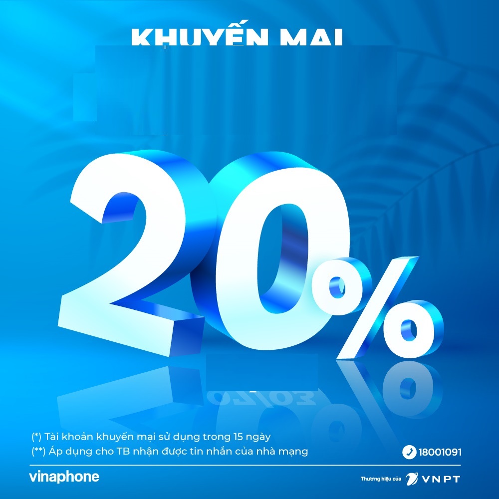 ️🎉 VinaPhone tặng bạn 20% giá trị thẻ nạp cho Thuê bao Trả trước nhận được tin nhắn thông báo của nhà mạng.