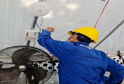 Các kỹ sư của VNPT đang thực hiện thiết lập hệ thống Internet không dây (Wifi)
